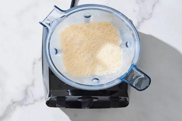 مخلوط کردن موز، طالبی، ماست یونانی و یخ در طرز تهیه شیک موز و طالبی