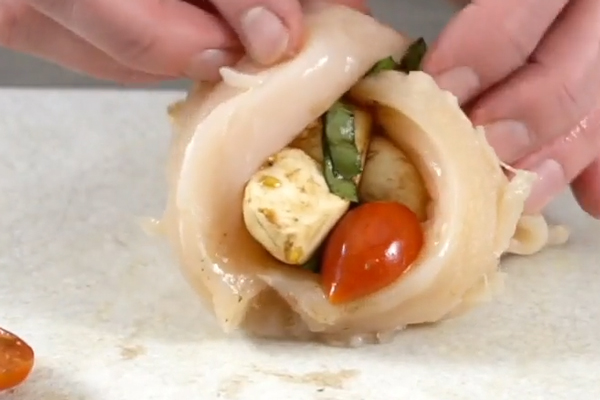 ۳. رول کردن سینه مرغ با مواد فیلینگ