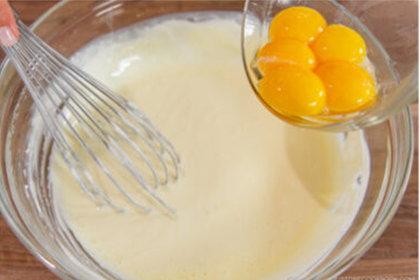مرحله چهارم: افزودن زرده‌های تخم‌مرغ